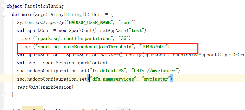 .set("spark.sql.autoBroadcastJoinThreshold", "10485760 ")