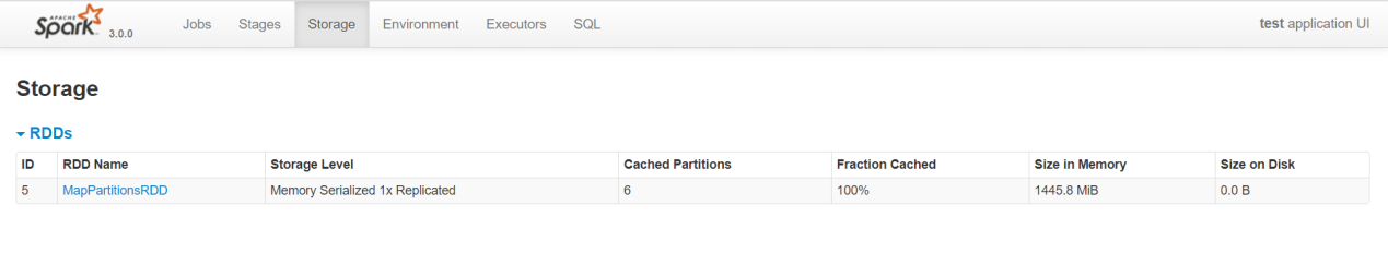 打成jar包在yarn上运行,查看storage所占内存,内存占用减少了1445.8mb并且缓存了100%。使用序列化缓存配合kryo序列化,可以优化存储内存占用