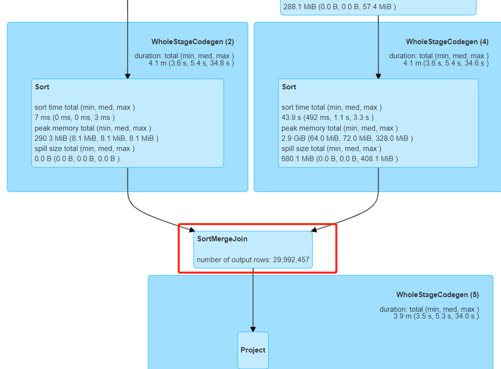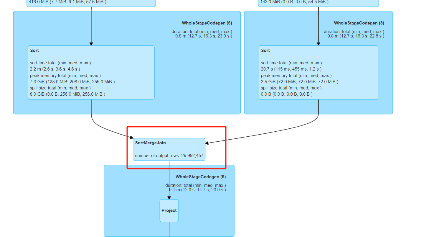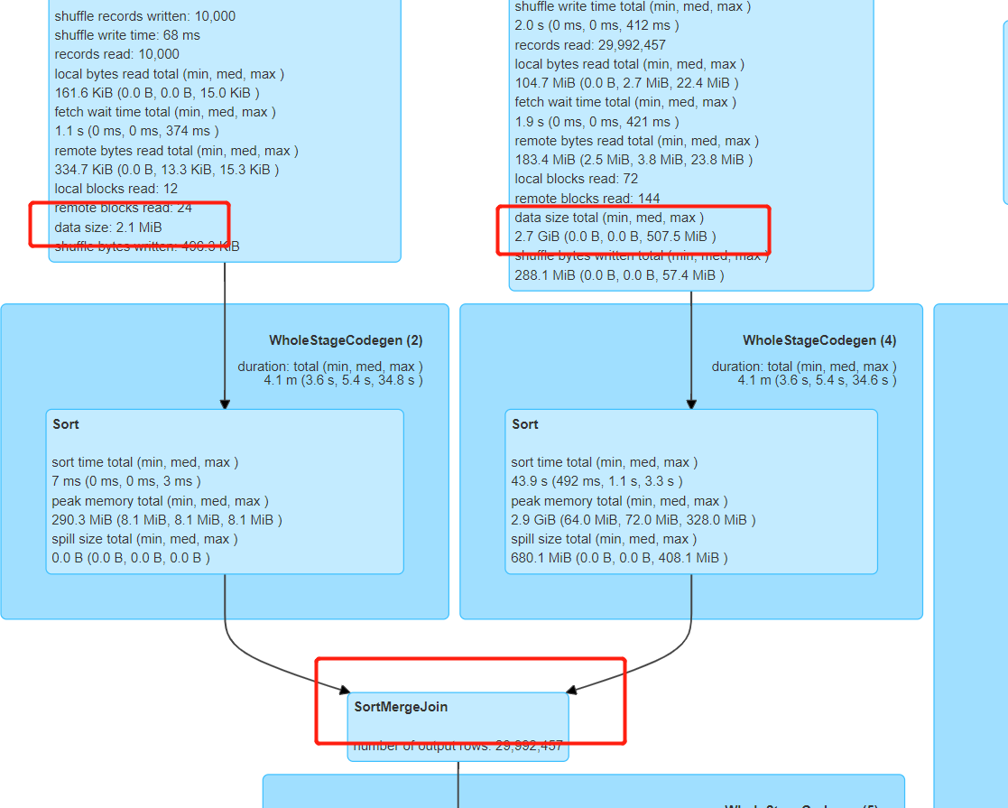 两张表都走了SortMerge Join。那么根据表大小可以看出哪些是小表,哪些是大表