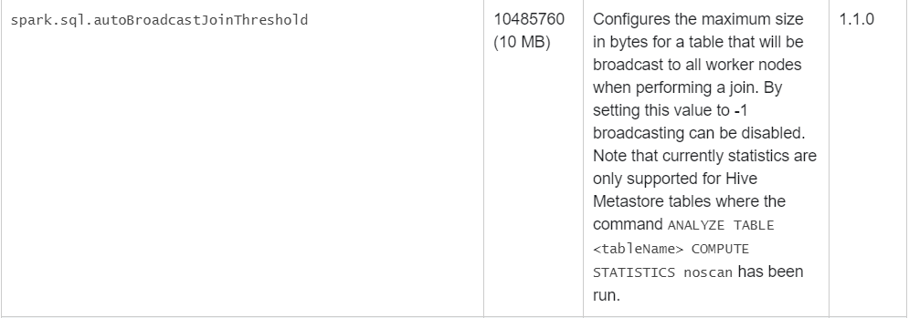 .set("spark.sql.autoBroadcastJoinThreshold","-1")