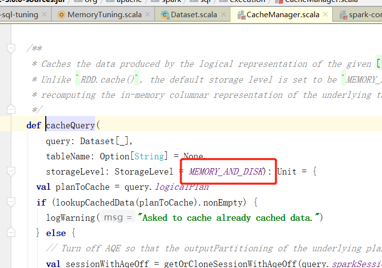 并且DataSet的cache默认缓存级别与RDD不一样,是MEMORY_AND_DISK