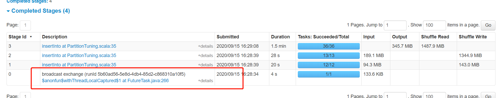 修改完参数后,再次打成jar包,在yarn上运行此任务查看stage,和执行计划图。当然默认值为10mb,当表小于10mb也可以不设置。