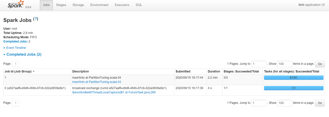 还是由上面视图三张表为例,进行join,先不进行缩小分区操作。查看效果。为了演示效果,先禁用了广播join。广播join下面会进行说明。