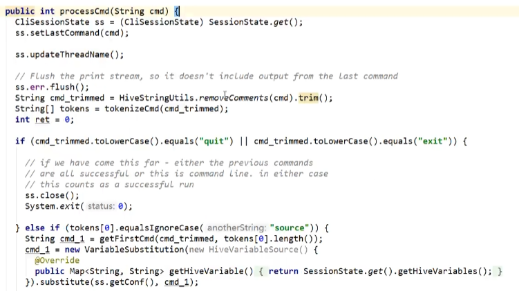 ret = cli.processLine(line, true); //2.3.4 processLine方法