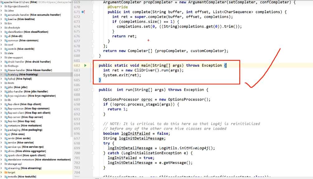 2.3.1 找到“CliDriver”这个类的“main”方法