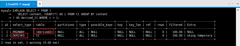 Creating tmp table 正在创建临时表以存放部分查询结果。