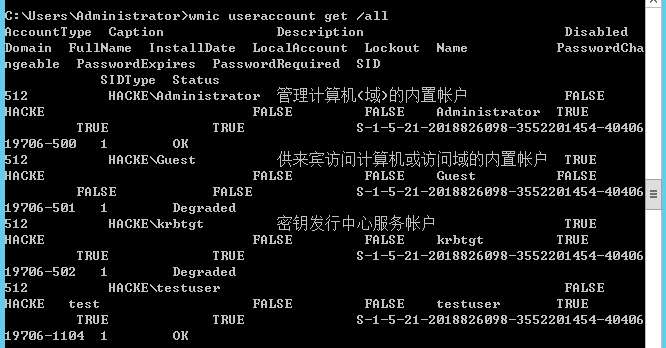 获取域内用户的详细信息(常见的参数包括用户名,描述信息,SID,域名,章台等