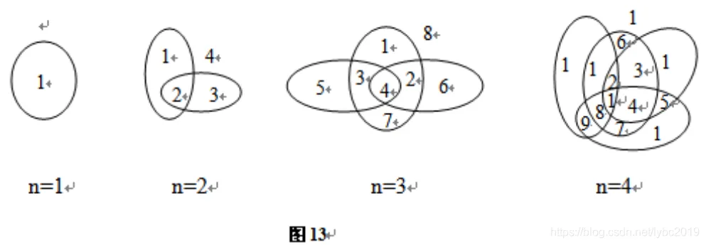 问题的提出:设有n条封闭曲线画在平面上,而任何两条封闭曲线恰好相交于两点,且任何三条封闭曲线不相交于同一点,问这些封闭曲线把平面分割成的区域个数。