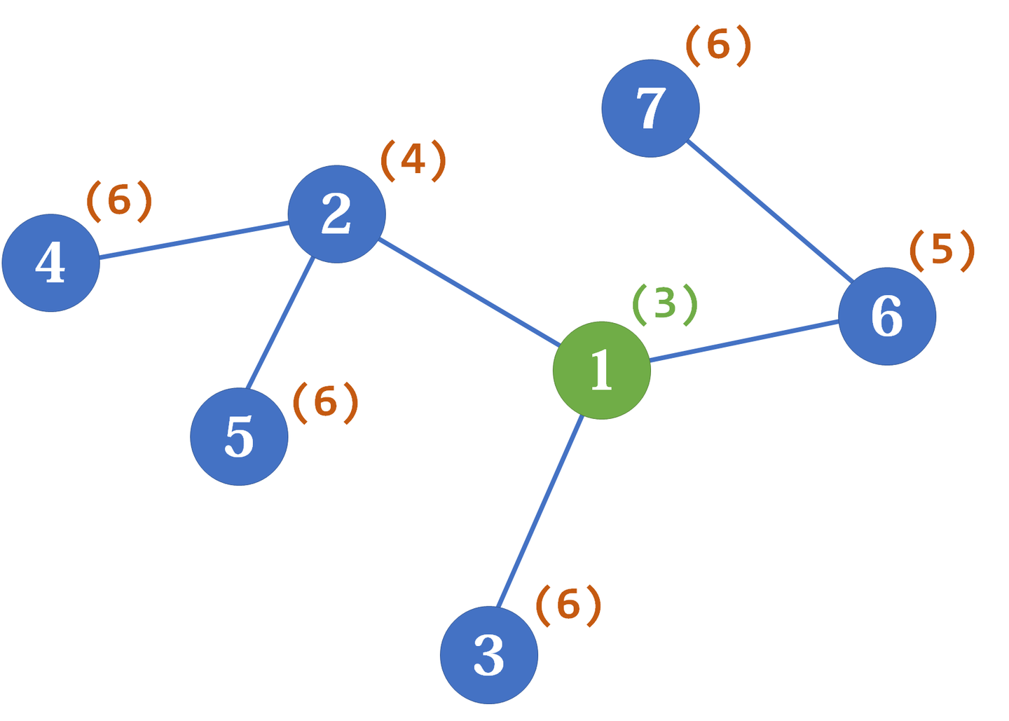 必要性:假设 是树的重心,且任意与它相邻的节点 都满足 ,那么 ,故 ,则 。对于任意不与 相邻的节点 ,都存在简单路径 ,那么 ,因此 。综上, 是所有节点中 最小的(或之一),也就是树的重心。