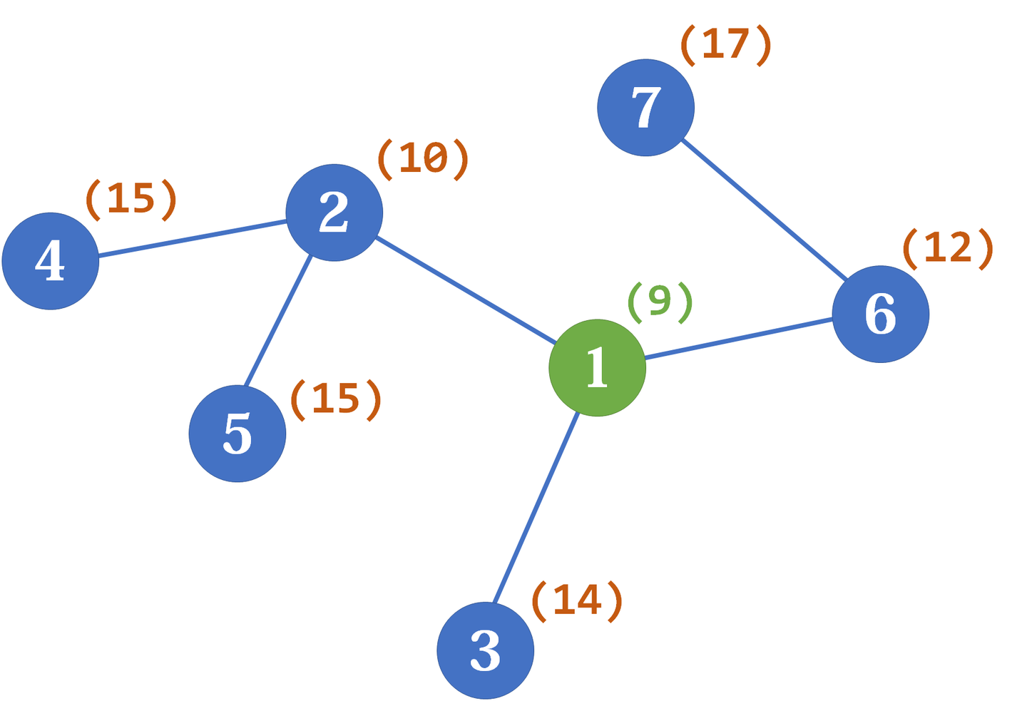 设所有点到某个点 的距离和为 。那么对于树上任意一个点 ,如果存在相邻的点 使得 ,则 ,因为这种移动使得 所在的子树上的点对 的贡献减1,而其他点对 的贡献加1,所以 比 少了 。
