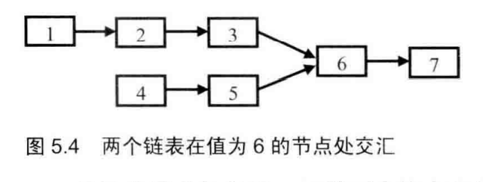 图中的两个链表的第一个公共节点就是6。这道题可以使用栈,将两个链表的节点分别入栈,当所有节点都入栈后,从栈顶开始比较,找出第一个公共节点,但是这样需要辅助栈。因为链表假设有公共节点,而且是单链表,那么尾部的节点一定会交汇,如果能同时遍历到两个链表尾,那么要么没公共节点,各自到达链表尾,要么在某一结点出现公共节点。现在问题分解为怎么让两个链表同时遍历到尾节点,两个链表不知道谁长谁短,如果知道,长链表比短链表长多少,就让长链表先走多少步,然后两个一起走,就能同时到达尾部了。那么这个问题就细分为3步:1.求两个链表的长度 2.得到长度差,长链表先走长度差步 3.一起遍历两个链表。go代码实现: