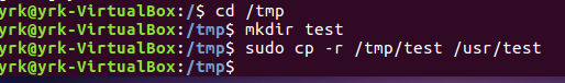 (10)在/tmp下新建目录test,再复制这个目录内容到/usr