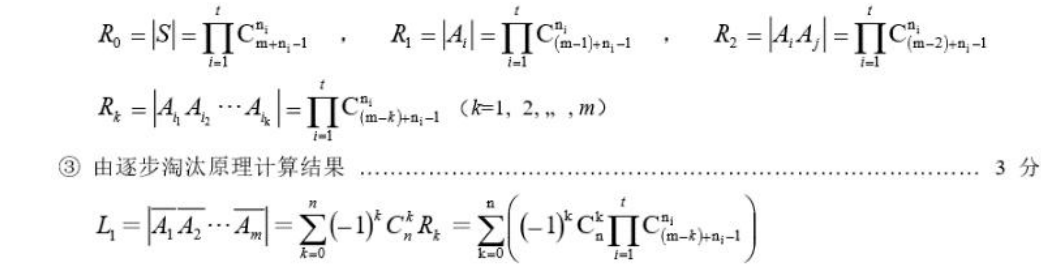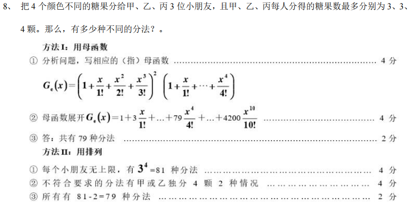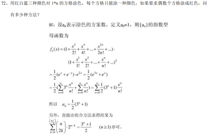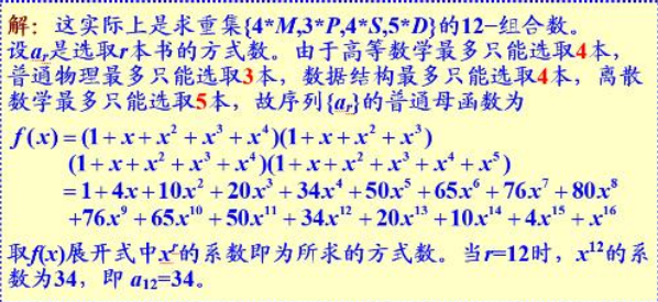 上述答案用排列组合中全集减补集的思路,还可以用生成函数和直接排列组合方式去做