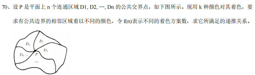 答案:\(\begin{cases}f\left(n\right)=\left(k-1\right)f\left(n-2\right)+\left(k-2\right)f\left(n-1\right)\left(n\geq4\right)\\f\left(2\right)=k\left(k-1\right),f\left(3\right)=k\left(k-1\right)\left(k-2\right)\end{cases}\)