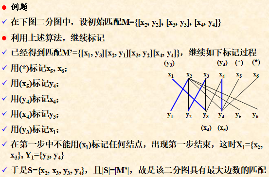 - 标注:运用算法过程中,从\(X\)端的\(x_i\)连到\(Y\)端的\(y_i\)则给\(y_i\)标注\((x_i)\),从\(Y\)端的\(y_i\)连到\(X\)端的\(x_i\)则给\(x_i\)标注\((y_i)\)