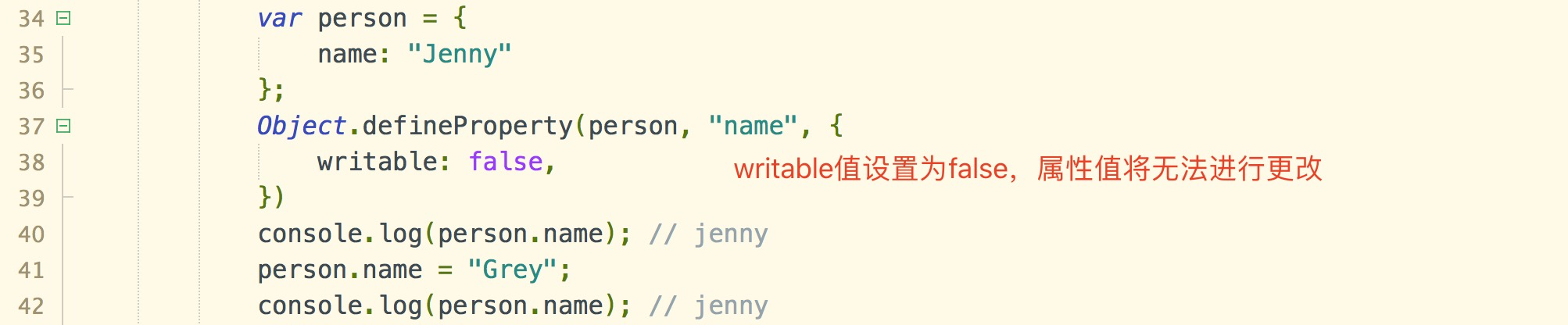 [[Writable]] : 表示能否修改属性的值。默认值为true。