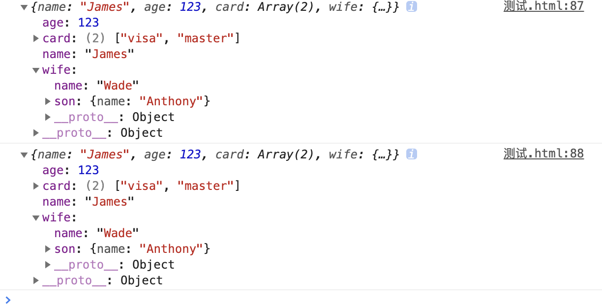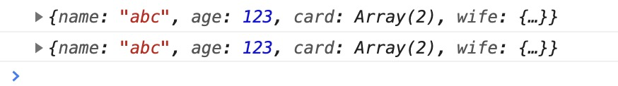 return target; } deepClone(obj, obj1); console.log(obj); console.log(obj1);