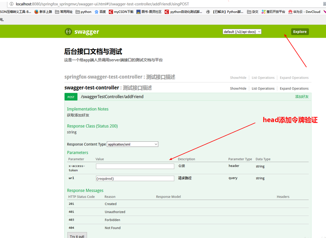 通过输入http://localhost:8080/项目跟路径/swagger-ui.html直接可以访问自己的页面。我的是http://localhost:8080/springfox_springmvc/swagger-ui.html