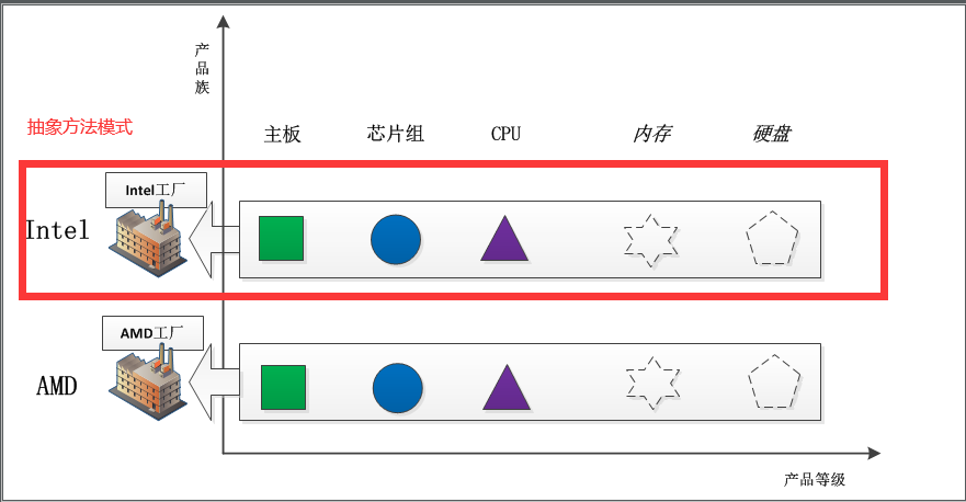 简单工厂在实际应用中非常的频繁,假设我们现在需要生产Intel和AMD相关的产品,来看看代码