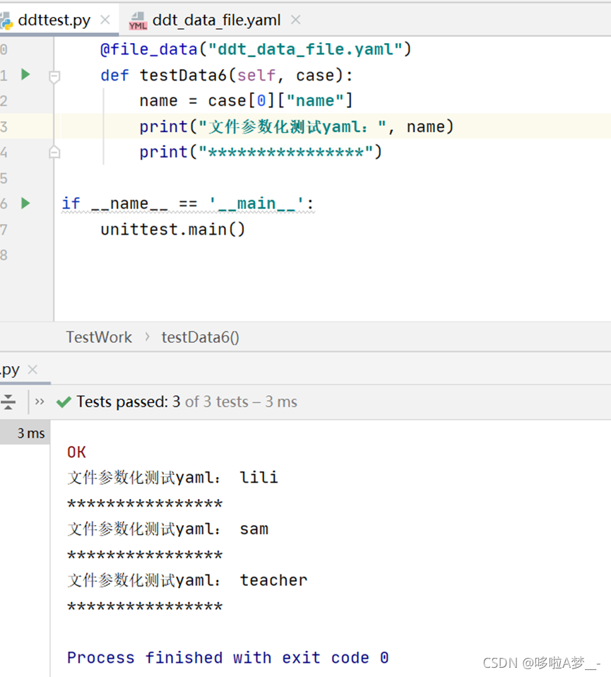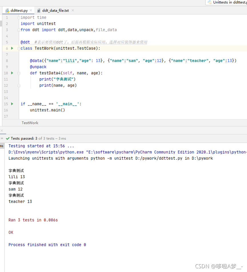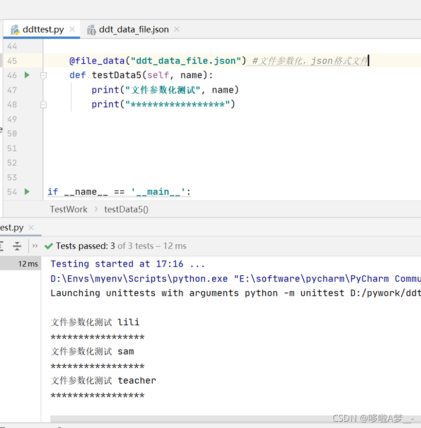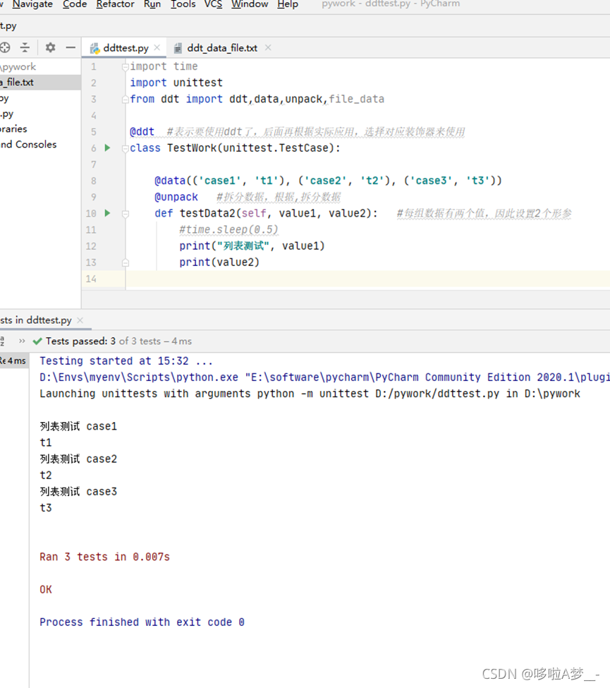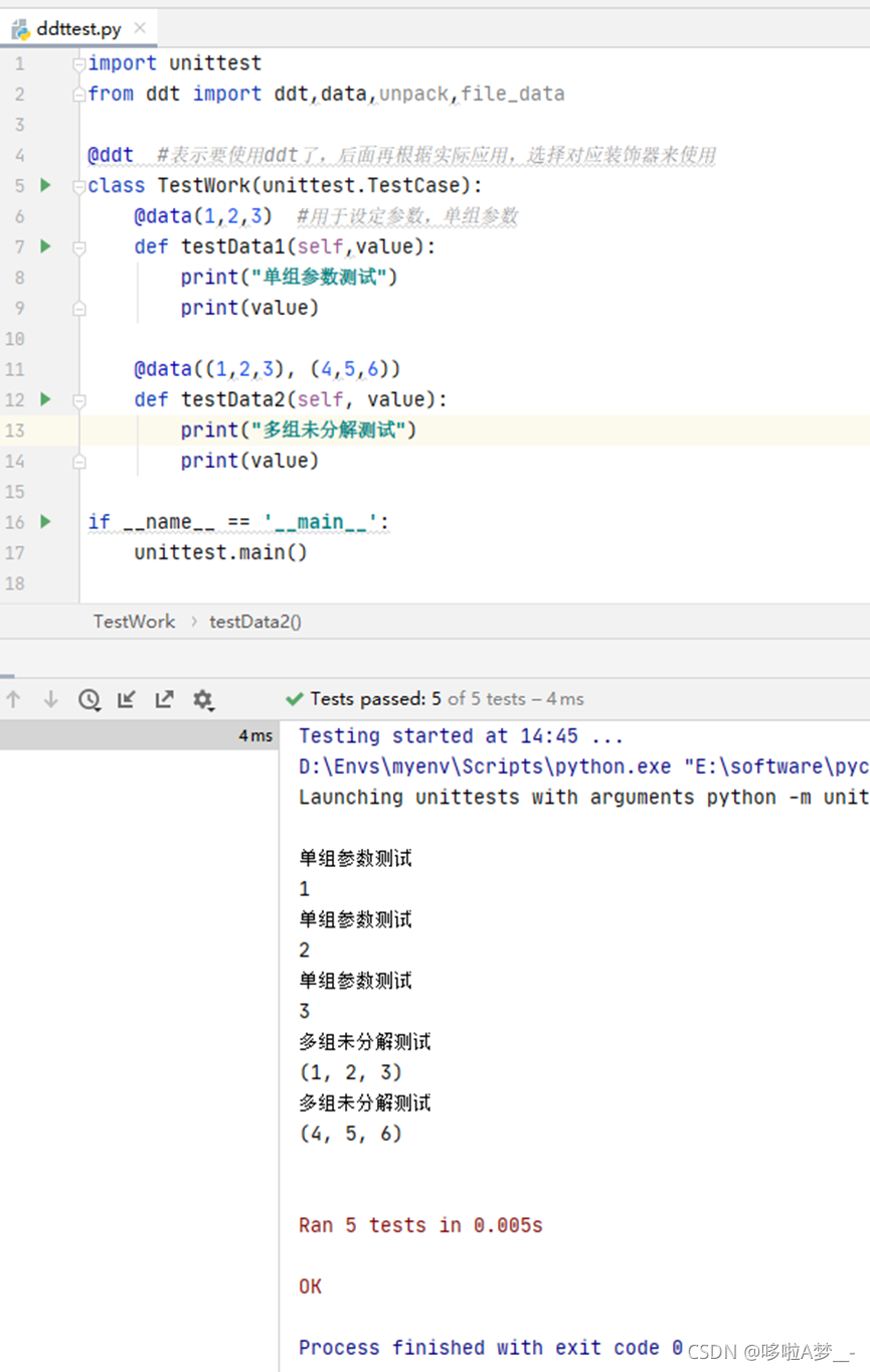 ddt即data driver test,数据驱动测试,简单来说就是测试数据的参数化。