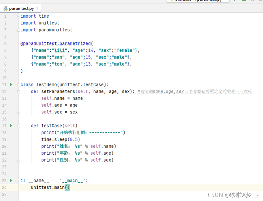 有些用例会考虑正向、逆向等多种组合,在同一个方法上测试不同的参数,这时候就需要考虑使用什么方法来进行管理大量测试数据,循环执行用例,提高代码的复用率。UnitTest提供了两种参数化方法,分别是ddt方法和paramunittest方法,两种方法都类似,可以传入多组参数,自动生成多个用例,下面就来介绍两个方法分别怎么使用。