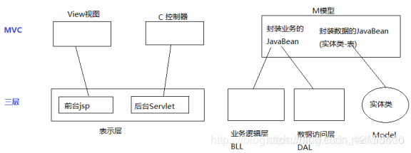 三层架构与MVC毫无关系。三层是基于业务逻辑来分的,mvc是基于页面来分的。