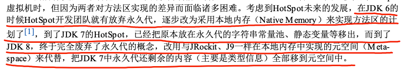 JDK 8后PermGen(永久代)已被 Metaspace(元空间) 取代,元空间使用的是直接内存。以前永久代用的是堆内存空间。