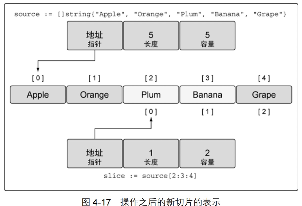 21.切片只能访问到其长度内的元素。试图访问超出其长度的元素将会导致语言运行时异常。与切片的容量相关联的元素只能用于增长切片。在使用这部分元素前,必须将其合并到切片的长度里。