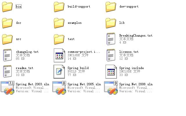 2. 打开spring.net源代码文件夹。