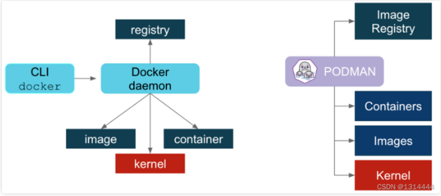 podman不需要守护程序,也不需要root用户运行,从逻辑架构上,比docker更加合理。