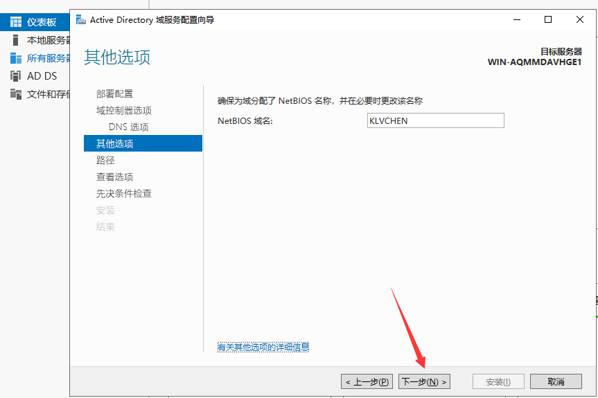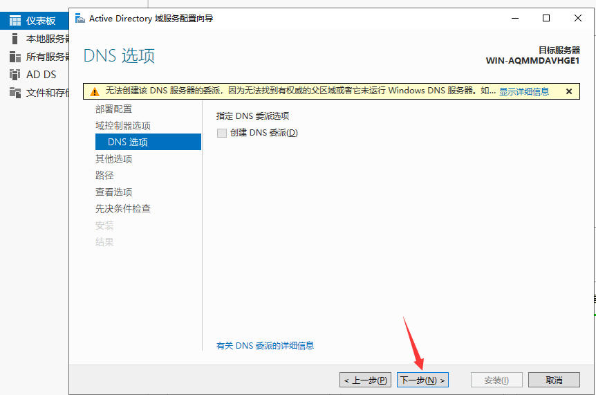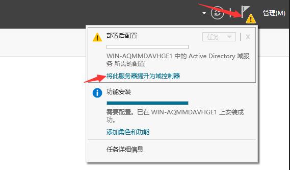 点击 "黄色图标",再选择 "将此服务器提升为域控制器"