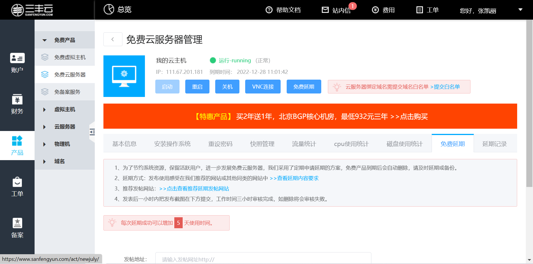 三丰是一款可以永久免费使用云服务器和云虚拟主机的网站-网址https://www.sanfengyun.com