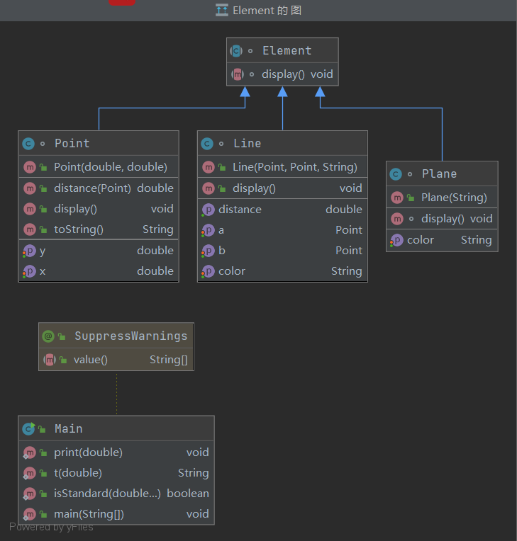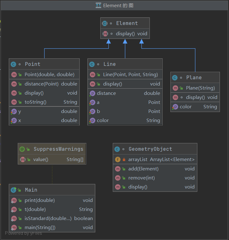 同样,依题意设计Element抽象类,并设计Plane类,和之前的点线类都继承Element类: