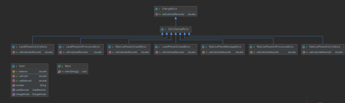 首先按题目意思创建出User类,包含属性:userRecords (用户记录)、balance(余额)、chargeMode(计费方式)、number(号码):