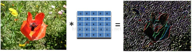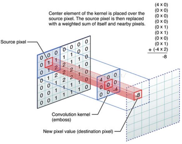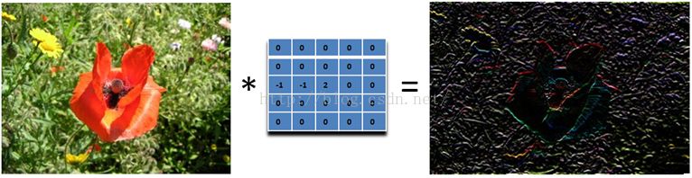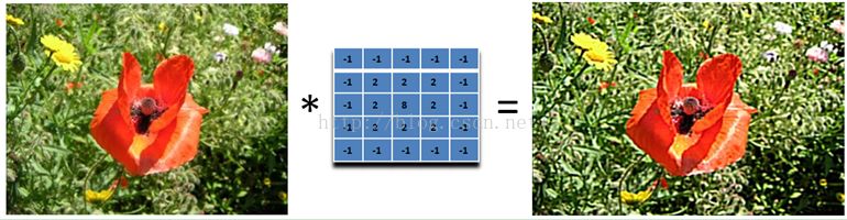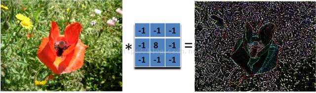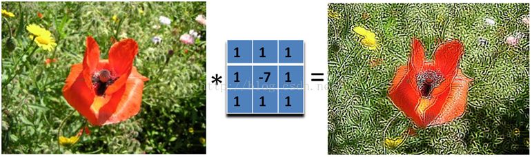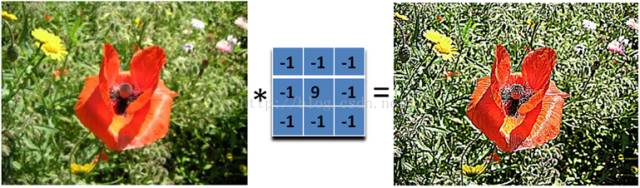 实际上是计算当前点和周围点的差别,然后将这个差别加到原来的位置上。另外,中间点的权值要比所有的权值和大于1,意味着这个像素要保持原来的值。