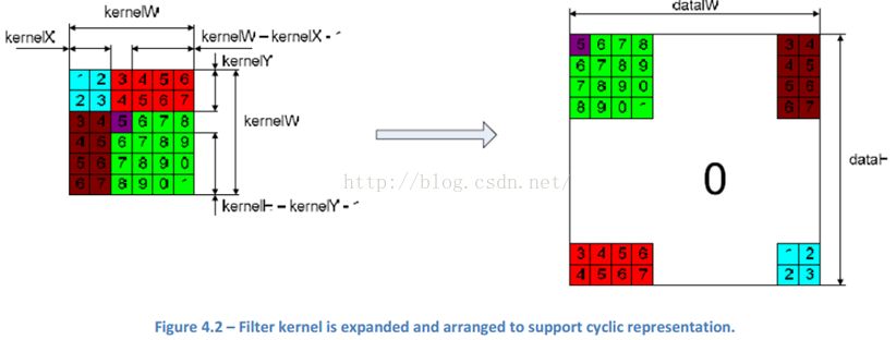 因为CUDA中的FFT实现是周期的,所以kernel的值也要安排成这样,以支持这种周期性。