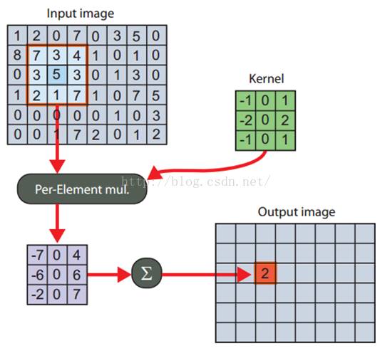 对图像和滤波矩阵进行逐个元素相乘再求和的操作就相当于将一个二维的函数移动到另一个二维函数的所有位置,这个操作就叫卷积或者协相关。卷积和协相关的差别是,卷积需要先对滤波矩阵进行180的翻转,但如果矩阵是对称的,那么两者就没有什么差别了。