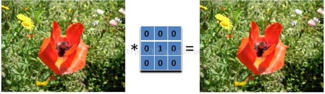 哈哈,大家可以看到啥了吗?这个滤波器啥也没有做,得到的图像和原图是一样的。因为只有中心点的值是1。邻域点的权值都是0,对滤波后的取值没有任何影响。