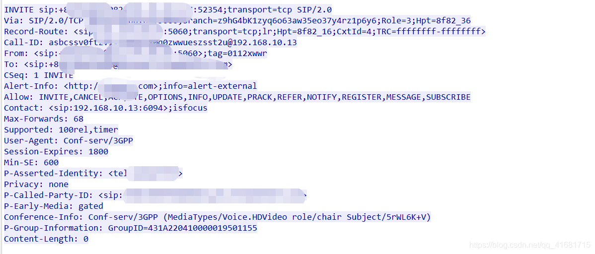 主叫INVITE报文: