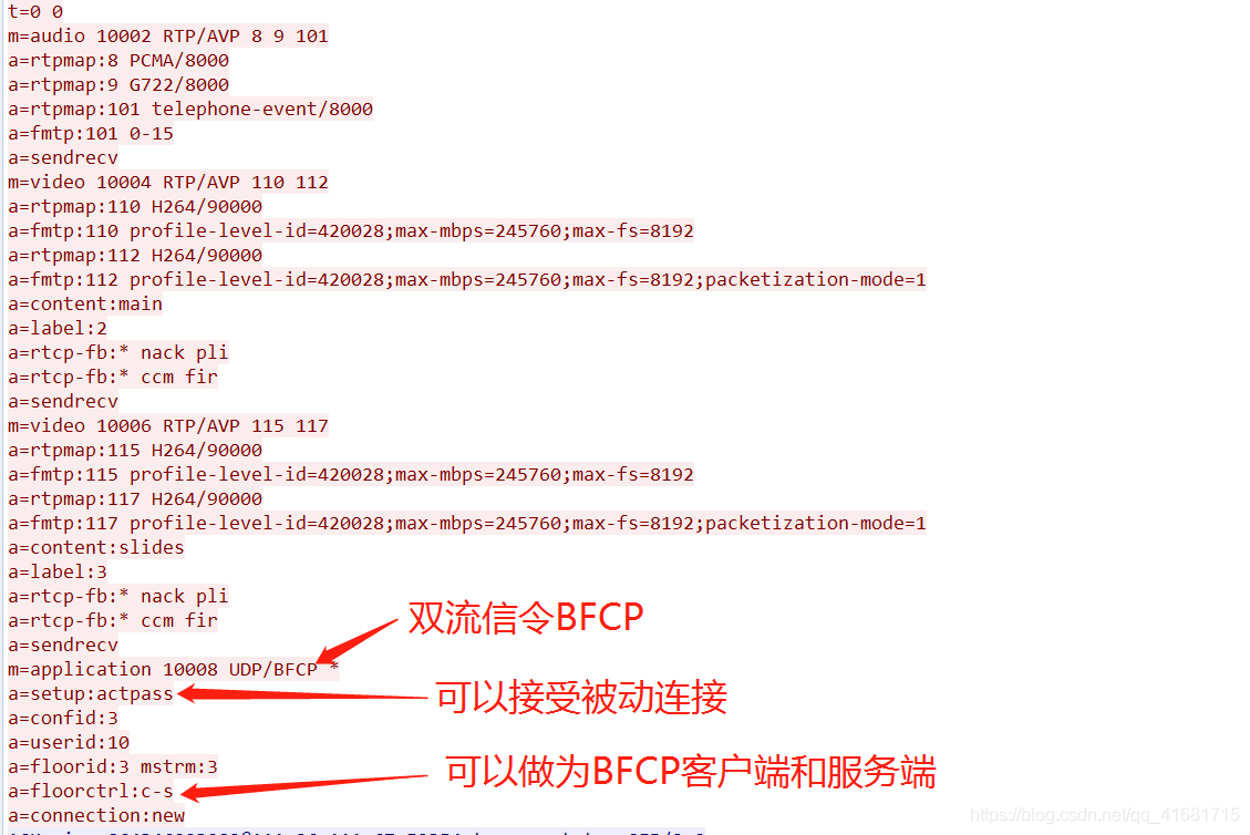 这里先来讲讲SIP携带的SDP中BFCP的协商问题,部分报文如下: