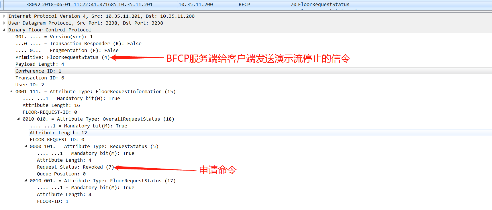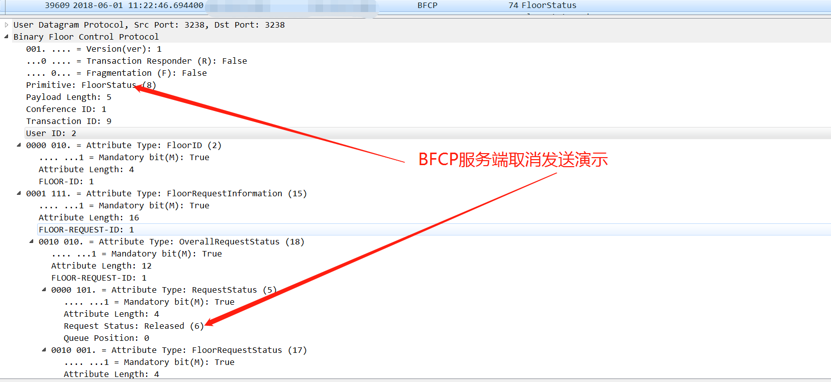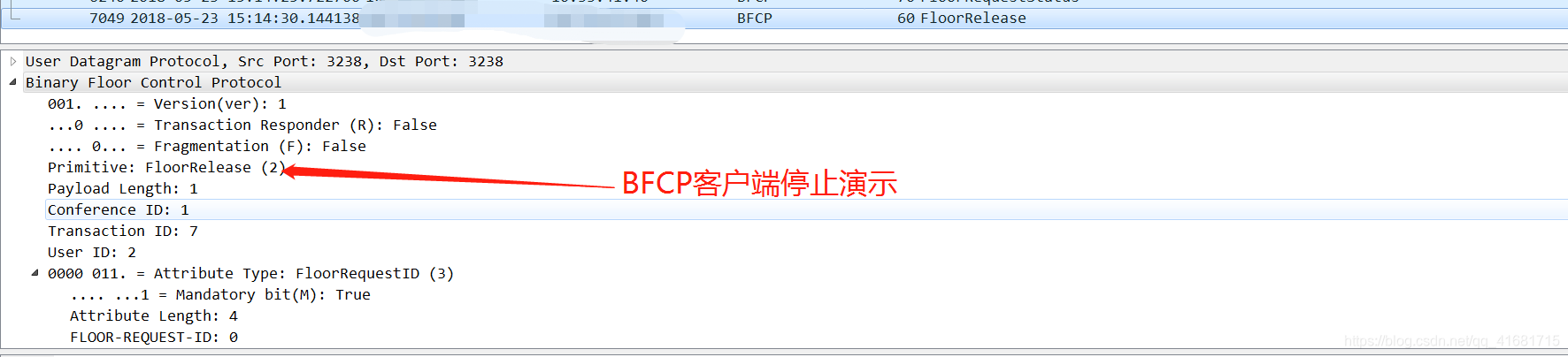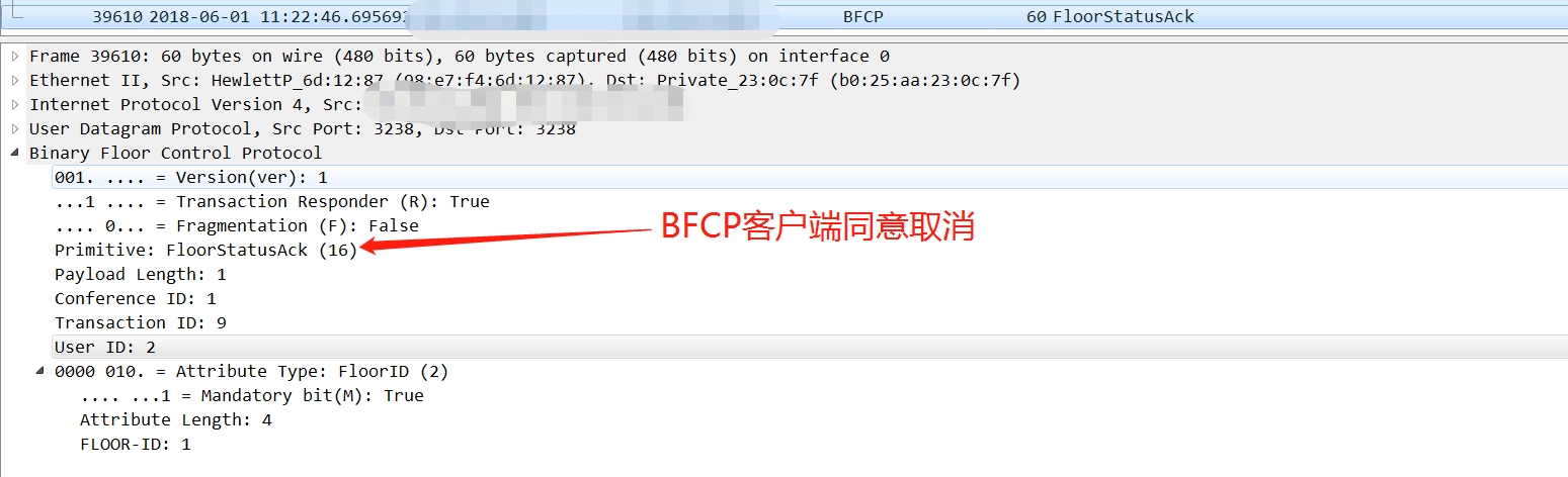 BFCP客户端取消演示交互报文如下: