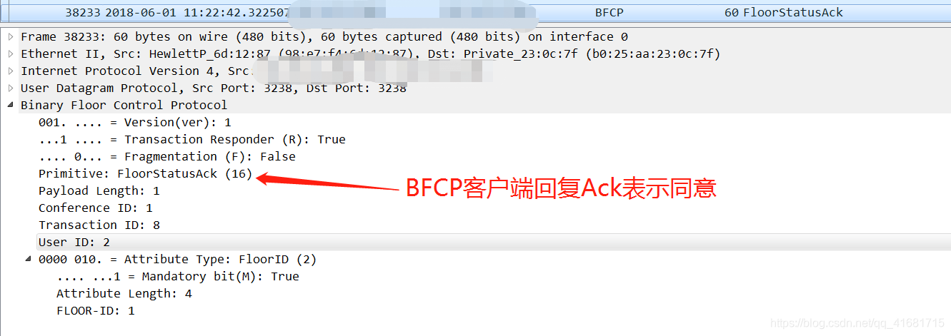 BFCP客户端对服务端申请客户端停止演示信令响应(这里客户端回复Ack表示同意)