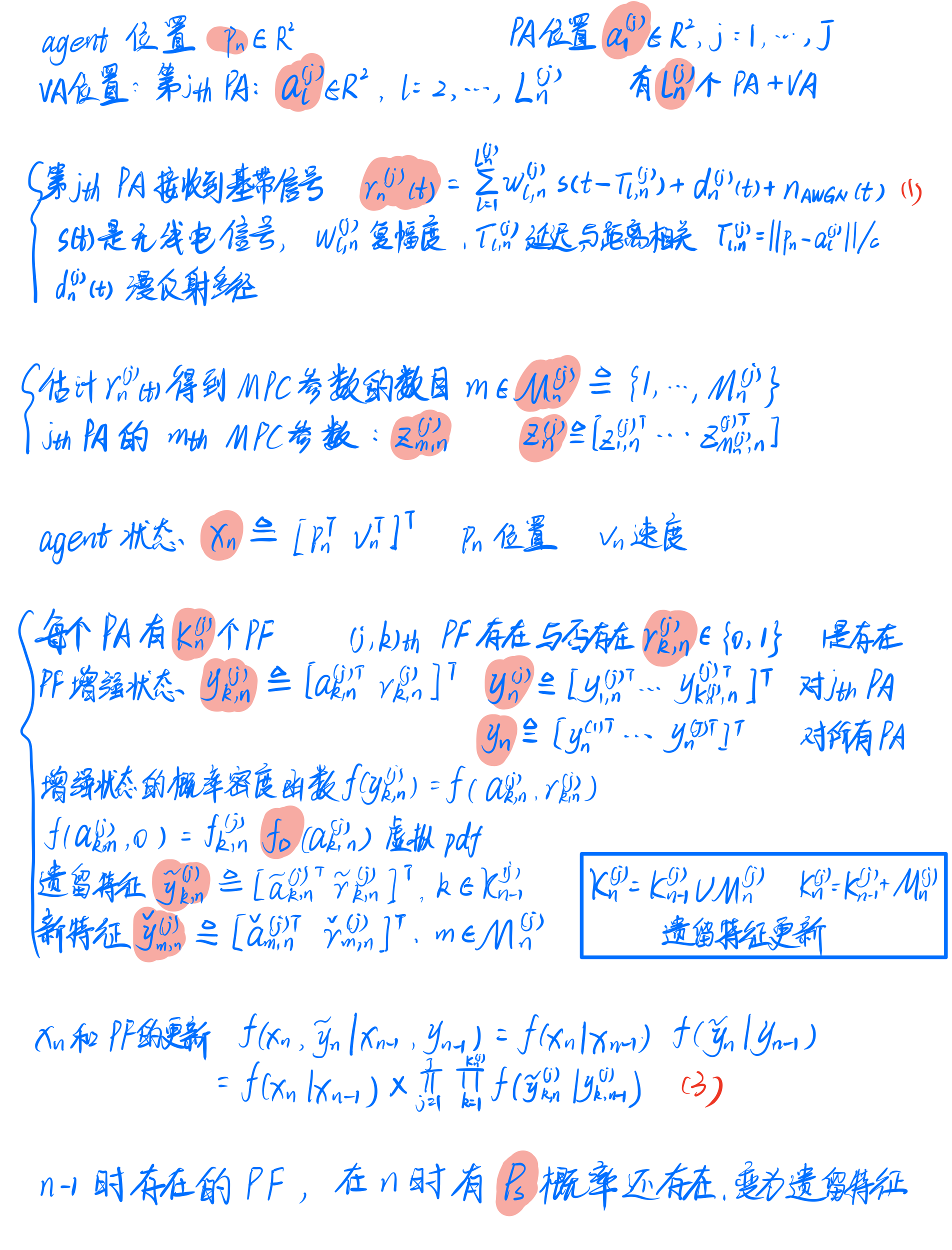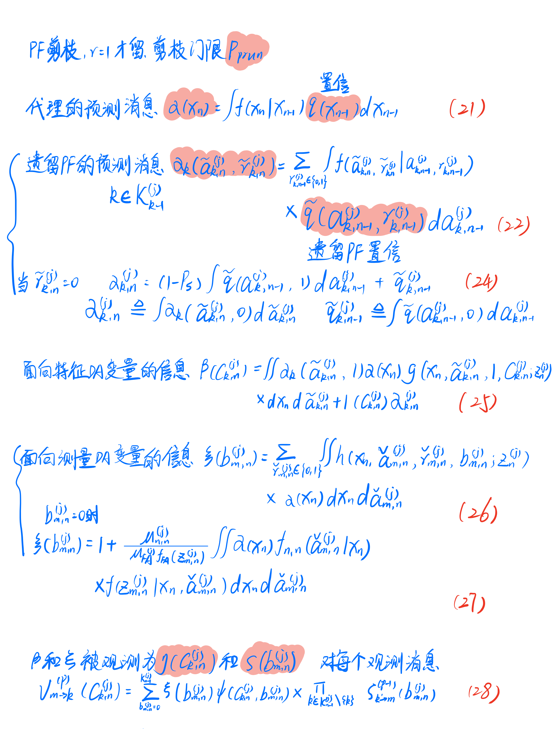 本文优于会议论文 [33],因为它通过改进的贝叶斯技术取代了其中用于确定新 PF 初始分布的启发式方法。此外,[33] 的因子图和 BP 算法通过引入“新 PF”得到扩展,即首次生成测量值的特征。