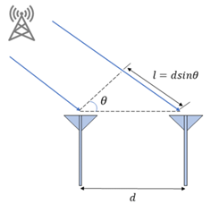 图5 使用两个 ULA 天线的 AoA (θ) 估计的几何图示。