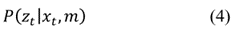 为了计算 (2),需要为机器人的观察和运动定义概率分布模型 [18]。观察模型通常表示为在给定地图和机器人位置的情况下找到测量 zt 的概率: