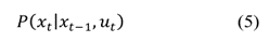 另一方面,运动模型描述了在给定先前位置的情况下机器人当前位置的概率以及测距测量。这可以表示为: