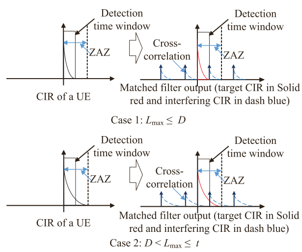 ZAZ和ZCCZ中最小的区域称为零相关区(ZCZ),当$D_{ZCZ}\geqslant L_{max}$且检测时间窗口$p$满足$L_{max}\leqslant D \leqslant D_{ZCZ}+1$,\eqref{f2}简化成为: