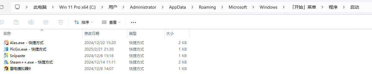 - 将需要开机自启的应用的快捷方式放到以下的路径中