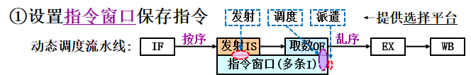 3)采用分布式指令窗口(基于部件->存多条指令/部件)及调度机构 --对比记分牌为集中式,1条指令/部件
