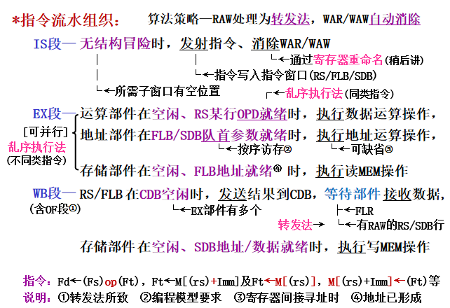 - 我的注释:相当于把指令流出的工作拆分成了两部分:1)检测结构冲突 2)等待数据冲突消失。 没有结构冲突,指令就可以流出。流出后的指令一旦操作数就绪就可以执行,这样是乱序的。